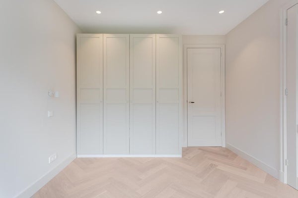 Het appartement beschikt over twee ruime slaapkamers, beide met een eigen badkamer en een praktische inbouwkast. De slaapkamer aan de achterzijde biedt directe toegang tot het balkon.