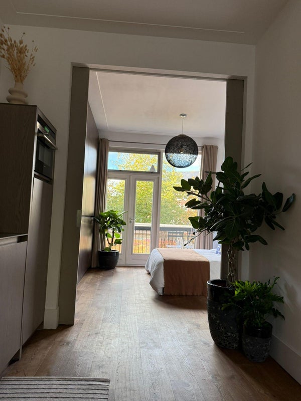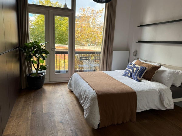 - Twee slaapkamers aan de achterkant met balkon met uitzicht op het Schinkelkade-kanaal
