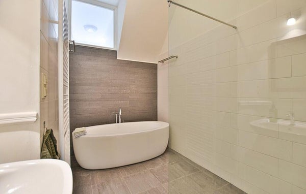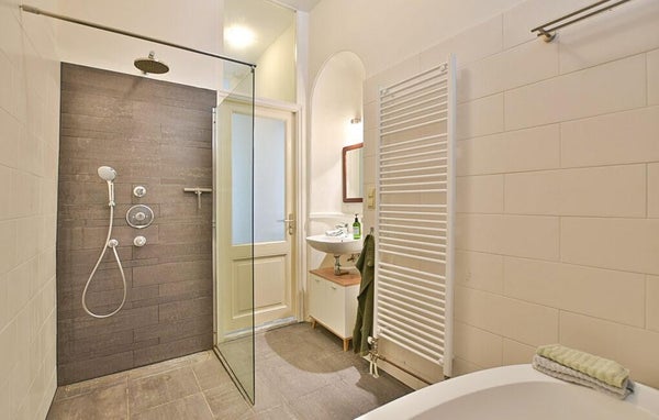 - Grote moderne badkamer met ligbad, aparte douche, wastafel;
