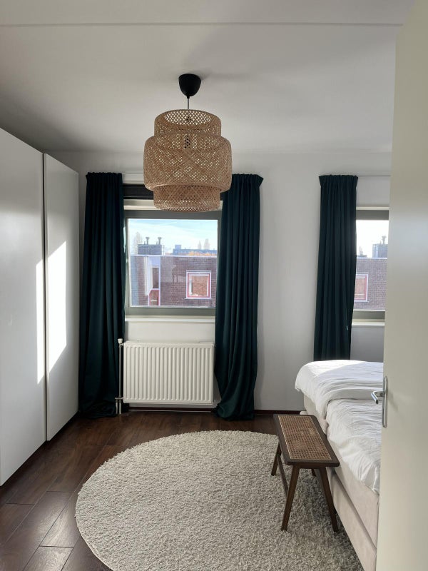 -Slaapkamer 2; inbouwkast, gordijnenrails, gordijnen, vitrage, plafondlamp