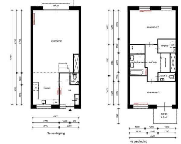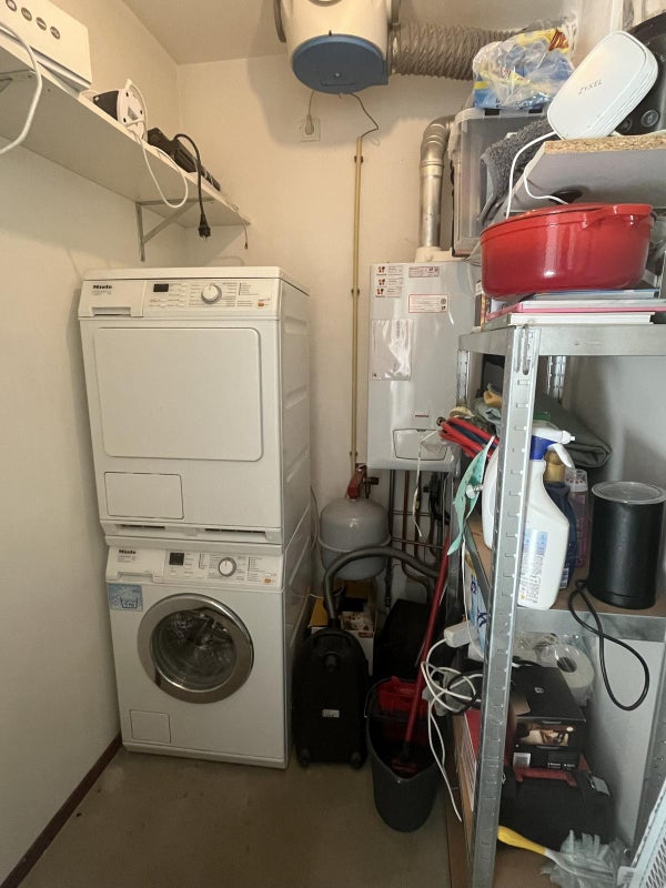 2e etage: 2 ruime slaapkamers, separaat toilet, badkamer met douche en bad, berging met wasmachine aansluiting en balkon.