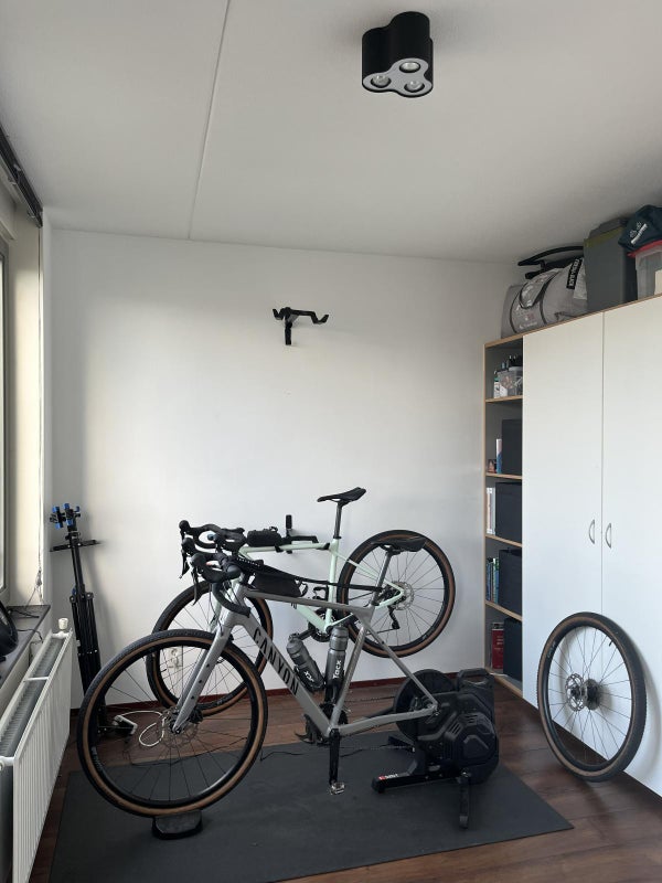 -Woonkamer/keuken; gordijnenrails, billy, houten kist (onder trap), plankjes en plankendragers keuken