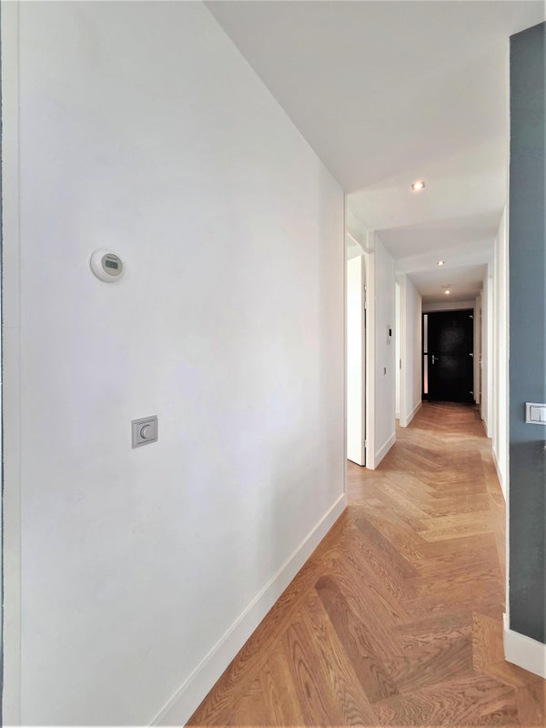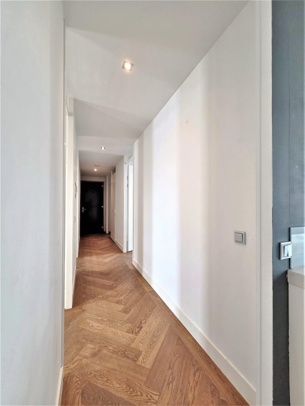 Via de gemeenschappelijke entree met lift bereik je het appartement op de derde verdieping. De hal biedt toegang tot een interne berging met wasmachine, een aparte wc, de badkamer met inloopdouche en wastafel, twee slaapkamers en een derde kamer die geschikt is als babykamer / home office.