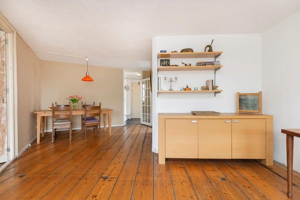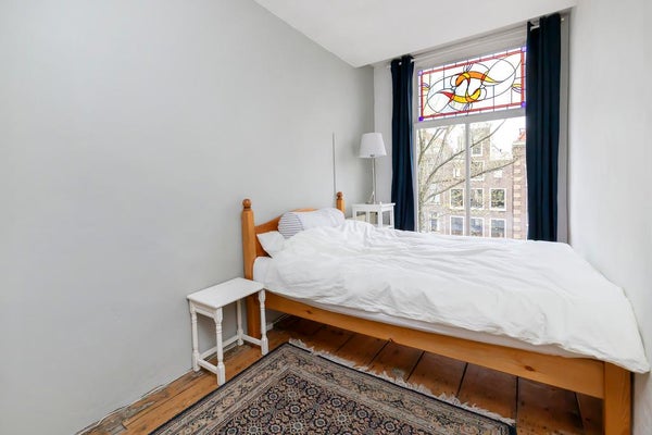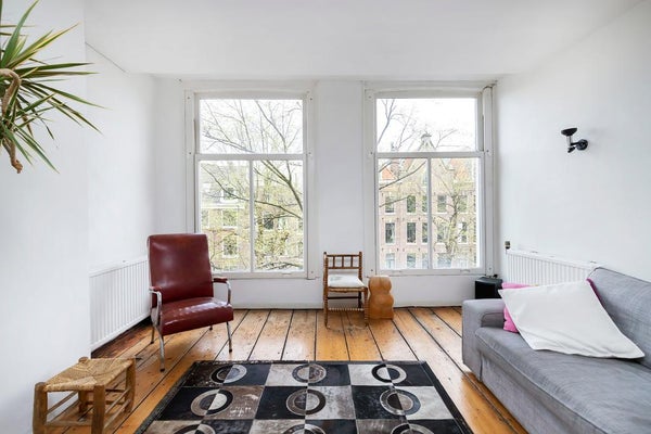 Vanuit de woonkamer heb je een magnifiek uitzicht over de Bloemgracht. De twee grote voorkamerramen vullen de ruimte met overvloedig daglicht.