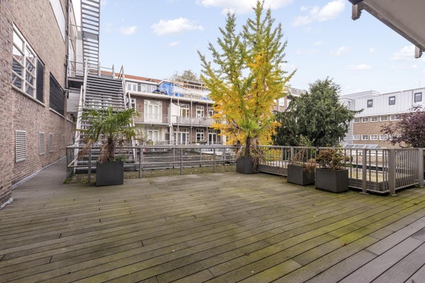 Een van de grootste pluspunten van dit appartement is het royale terras. Deze direct toegankelijke buitenruimte biedt volop mogelijkheden voor een zit- of loungehoek. Het terras is sfeervol ingericht met plantenbakken en vormt een rustige, zonnige plek midden in de stad.