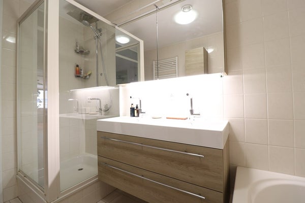 - Badkamer met ligbad, aparte douche en dubbele wastafel