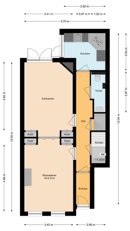 • Woonoppervlak verdeeld over twee etages + kelder