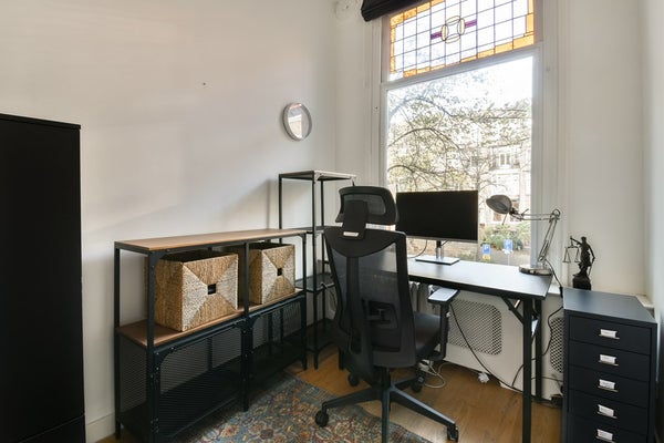 De derde slaapkamer is momenteel ingericht als home office en biedt prachtig uitzicht aan de voorzijde van de woning.