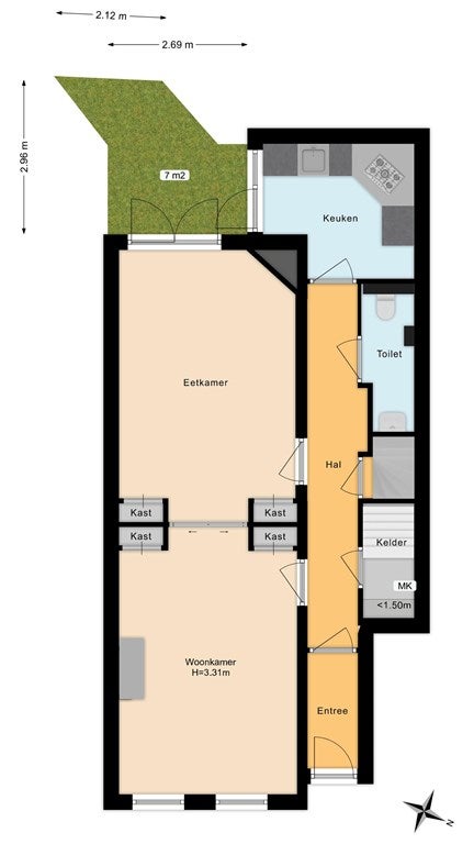 - Aanwezig (7 m², gelegen op het zuiden)