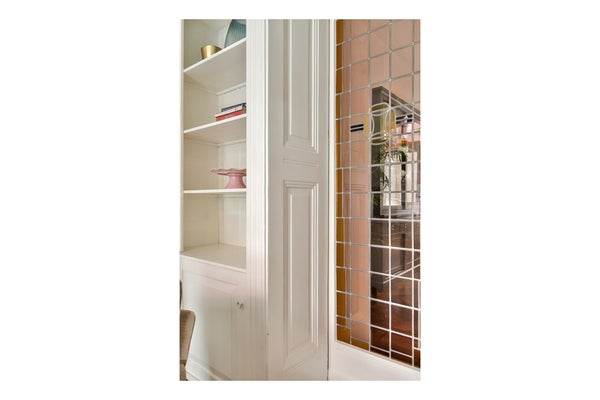 De klassieke woonkamer en suite beschikt over hoge plafonds (3.31 m), glas-in-lood schuifdeuren, marmeren schouwen, ingebouwde kasten en openslaande deuren naar de tuin.