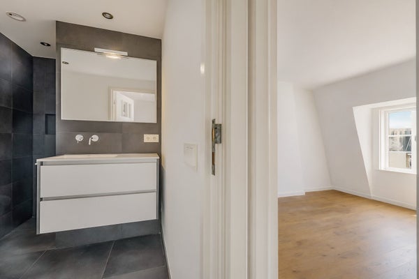 Het appartement beschikt over twee slaapkamers en een moderne badkamer met inloopdouche, hangend toilet en wastafelmeubel. De lichte ruimtes, het grachtenzicht en het karakter van het pand maken dit een bijzondere woning in een van de aantrekkelijkste straten van Amsterdam.