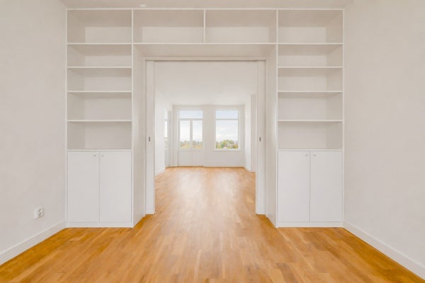 Dit lichte en karaktervolle appartement aan de Haarlemmerweg bevindt zich in een markant rood bakstenen pand, direct aan de gracht. De woning heeft een warme uitstraling door de doorgaande houten parketvloer en beschikt over een bijzonder kenmerk: ingebouwde boekenkasten die de woonkamer verdelen in een royale leefruimte en een aparte zithoek.