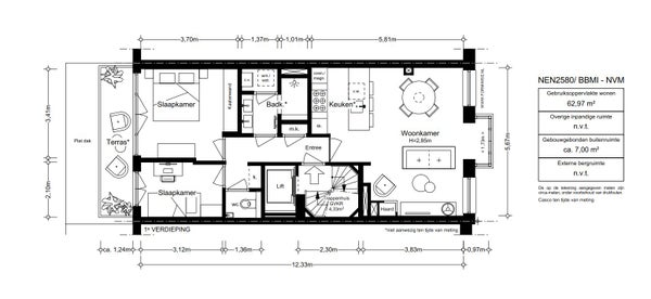 Alle opgegeven maten en oppervlakten zijn indicatief. De gebruiksoppervlakte is berekend conform de branche vastgestelde NEN2580-norm. De oppervlakte kan derhalve afwijken van vergelijkbare panden en/of oude referenties. Dit heeft vooral te maken met deze (nieuwe) rekenmethode. Wij doen ons uiterste best de juiste oppervlakte te berekenen. Doch willen wij benadrukken dat aan enig verschil tussen de opgegeven en de werkelijke grootte geen rechten kunnen worden ontleend.