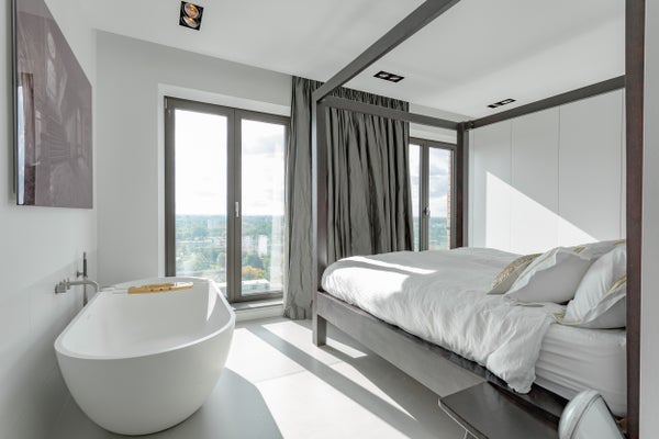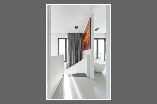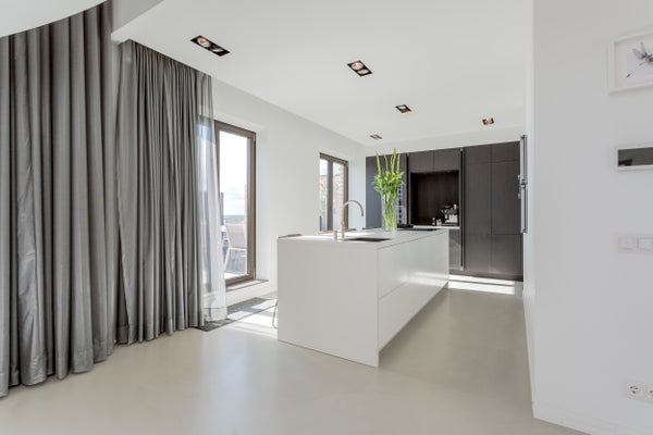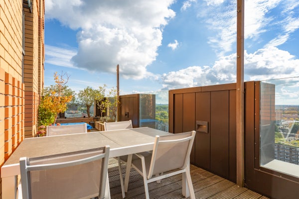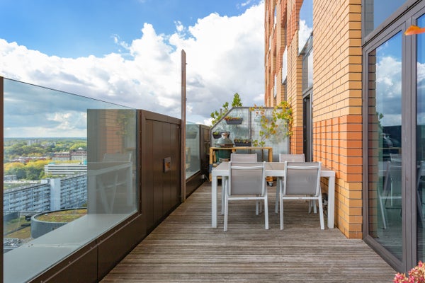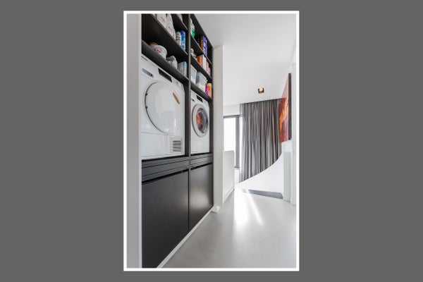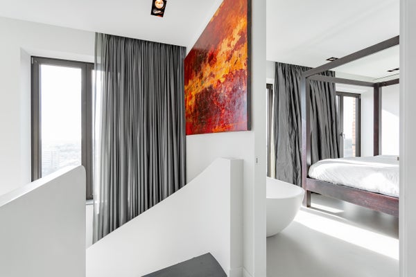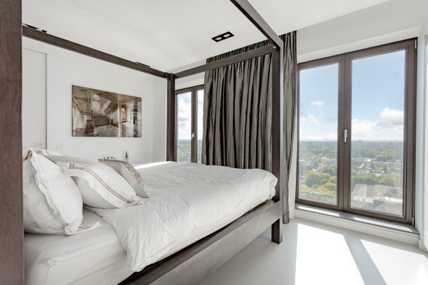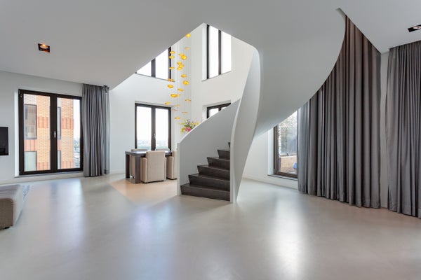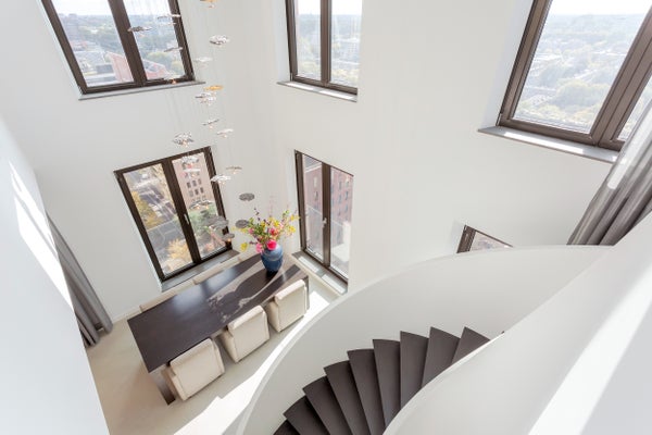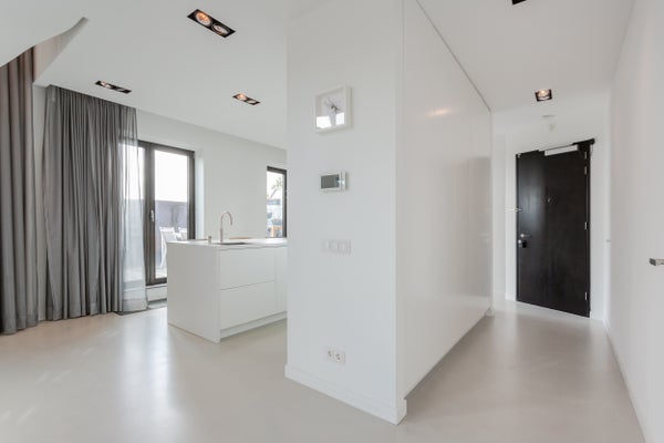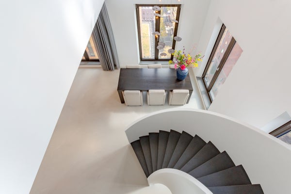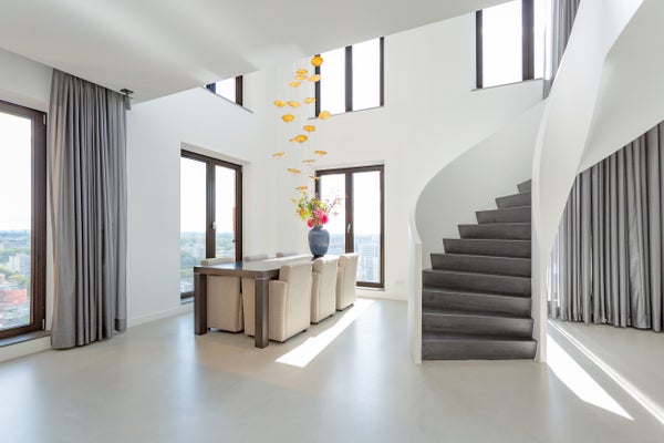 Dit appartement onderscheidt zich door zijn hoge afwerkingsniveau, royale indeling en overvloed aan licht door zijn enorme raampartijen en geweldige vide. De fraaie trap in de woonkamer is met recht een eye-catcher. De woning beschikt over drie slaapkamers en twee geweldige badkamers met onder andere Vola kranen ideaal voor wie comfortabel en representatief wil wonen, alleen, samen of met zijn gezin. De op maat gemaakte verlichting is dim-to-warm LED verlichting aangesloten op een GIRA domoticasysteem. Hiermee wordt ook de gordijnen en de RGBW led infra mee bedient. Zodoende is voor elk moment een unieke sfeer te creëren.