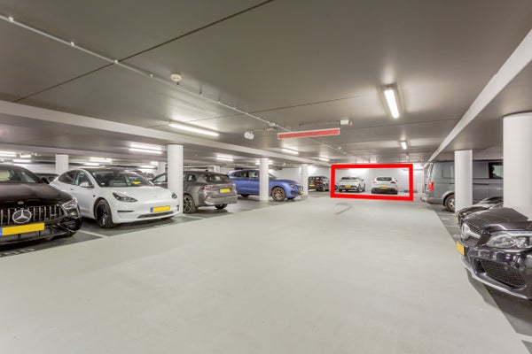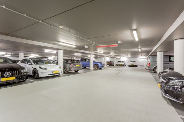 Bij dit appartement kunnen er twee parkeerplaatsen worden gehuurd in de luxe afgewerkte en goed verlichte ondergelegen parkeergarage. De garage is alleen toegankelijk voor bewoners via een speedgate. Daarnaast is er een gezamenlijke fietsenstalling en berging aanwezig.