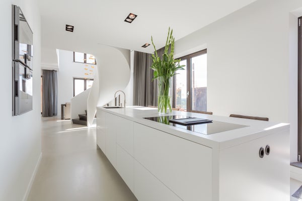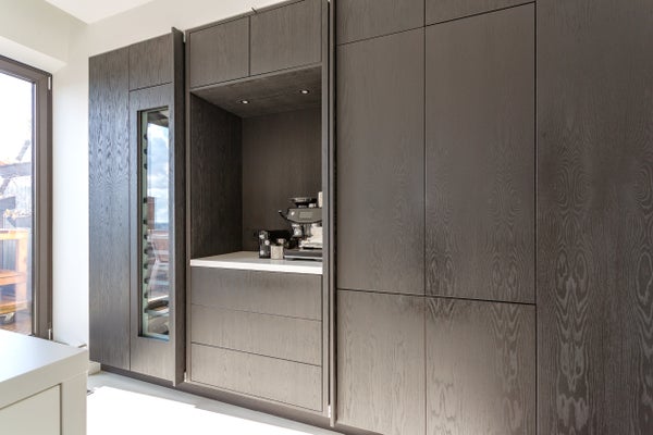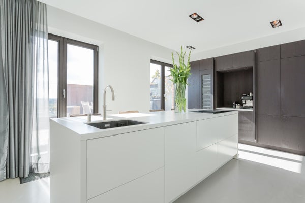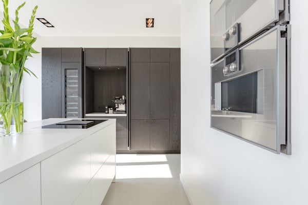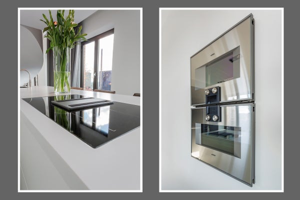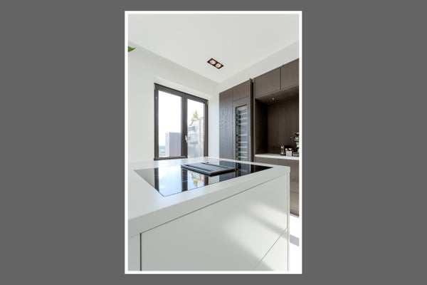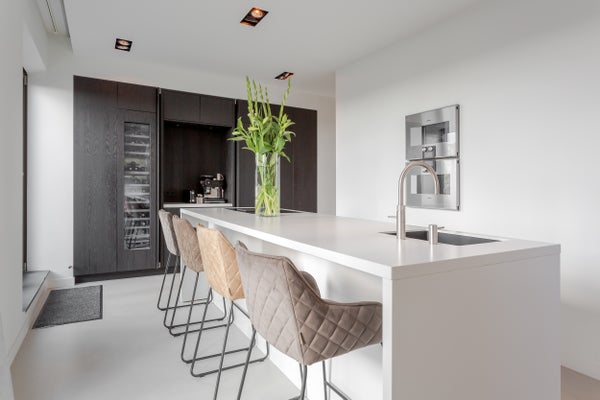 De woonkamer heeft een prachtige lichtinval en directe toegang middels drie dubbele deuren tot het zonnige terras van zo'n 22 m2, waar u tot laat kunt genieten van de middag- en avondzon. De moderne en zeer luxe keuken is voorzien van hoogwaardige inbouwapparatuur (alles is Gaggenau), Quooker drie in een (heet water, koud water en bubbels) en combineert functionaliteit met stijlvol minimalisme.