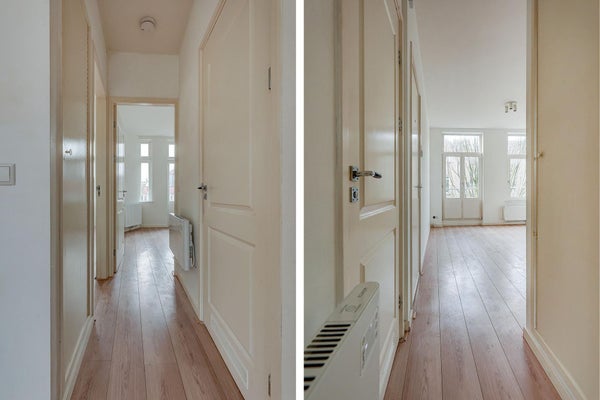 Je komt via het trappenhuis binnen in het appartement waar je meteen in de woonkamer staat. De woonkaamer heeft een goede lichtinval en een Frans balkon. De open keuken is voorzien van diverse inbouwapparatuur zoals een koelkast, combi-magnetron, vaatwasser, gaskookplaat en een afzuigkap.. Via de hal kom je in de badkamer welke voorzien is van een douche, wastafel, toilet en handdoekradiator. Aan de achterzijde zijn twee slaapkamers gelegen welke beide toegang geven tot het balkon welke gelegen is op het noordoosten.