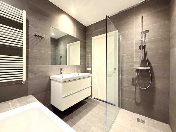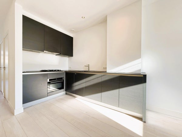 Indeling: Centrale entree met trap naar de tweede verdieping. Entree van het appartement met hal die toegang biedt tot alle ruimtes. De gezellige woonkamer met luxe open keuken zijn gelegen aan de achterzijde van het appartement. Vanuit deze ruimte toegang tot het balkon middels een harmonicadeur die volledig openvouwt. De nieuwe keuken is uitgerust met een vaatwasser, koelkast met vriesvak, combi oven/magnetron en een gaskookplaat met afzuigkap. De ruime slaapkamer is gelegen aan de voorzijde en is voorzien van een grote inloopkast. Vanuit de slaapkamer toegang tot de moderne badkamer voorzien van een ligbad, een inloopdouche een dubbel wastafelmeubel en een designradiator. Het aparte toilet met fonteintje is bereikbaar via de hal en er is een aparte ruimte waar de wasmachine staat.