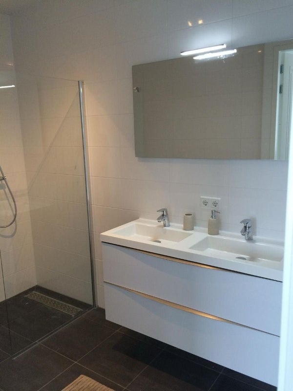 Het appartement beschikt over twee ruime slaapkamers, elk met voldoende opbergruimte. De badkamer is uitgerust met een moderne inloopdouche, een elegant badkamermeubel en hoogwaardige afwerkingen. Er is ook een apart toilet voor extra gemak.