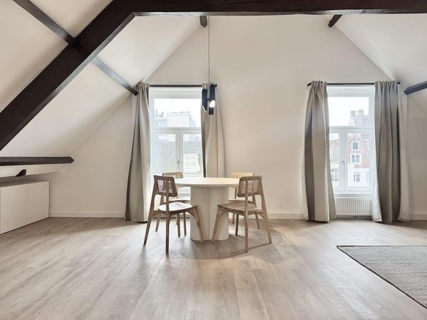 Helder en volledig gerenoveerd twee-slaapkamer appartement van ongeveer 74 m², gelegen op de tweede verdieping in het hart van Amsterdam, aan de charmante Kerkstraat. Het appartement heeft een ruime woonkamer met een moderne open keuken, twee slaapkamers, een badkamer, een apart toilet en een kenmerkend schuin dak dat warmte en karakter toevoegt. Een zolder is bereikbaar via een trap en biedt praktische extra opslagsruimte. Afgewerkt naar moderne normen en uitgerust met een nieuw energielabel, biedt het pand comfortabel en efficiënt wonen. Gelegen aan een rustige, groene straat net achter de iconische grachten, balanceert Kerkstraat perfect tussen rust en het stadsleven. Bewoners genieten van vrede en privacy, terwijl ze slechts een paar stappen verwijderd zijn van cafés, restaurants, boetieks en culturele hoogtepunten. Een supermarkt is om de hoek, en de verbindingen met het openbaar vervoer zijn uitstekend, met de Vijzelstraat Noord–Zuidlijn metrohalte op slechts vijf minuten lopen. Het appartement is direct beschikbaar voor verhuizing. Woondeling is toegestaan voor maximaal twee personen. Studenten en huisdieren zijn niet toegestaan. De bruto jaarinkomensvereiste is €115.000.