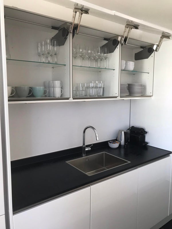 De halfopen keuken, grenzend aan de woonkamer, is voorzien van moderne inbouwapparatuur en biedt alles wat nodig is voor het bereiden van heerlijke maaltijden. Er zijn twee slaapkamers, elk met ruimte voor een groot bed en opbergmogelijkheden. Het appartement geniet van veel natuurlijk licht door de ruime raampartijen en de hoge ligging. Dubbele beglazing zorgt overal in het huis voor een uitstekende isolatie, wat bijdraagt aan een comfortabel binnenklimaat.