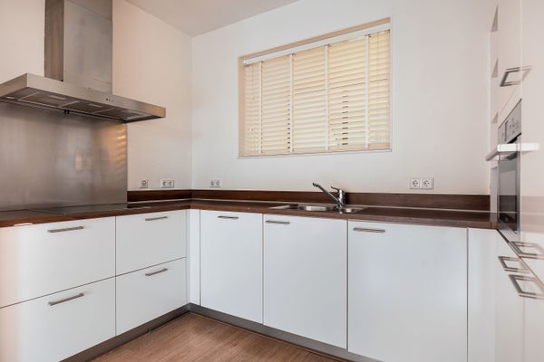 Het appartement heeft een royale woonkamer met semi open keuken, voorzien van Bosch inbouwapparatuur: een inductiekookplaat met afzuigkap, combi-magnetron, vaatwasser, koelkast en een vriezer. Alles om vanuit je eigen keuken heerlijke maaltijden te bereiden.