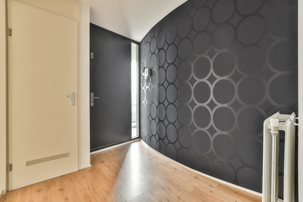 Bij binnenkomst in het moderne gebouw bereik je met de lift de entree van het appartement gelegen op de derde verdieping. De hal biedt toegang tot een separaat toilet en een praktische bergruimte met een wasmachine-aansluiting.