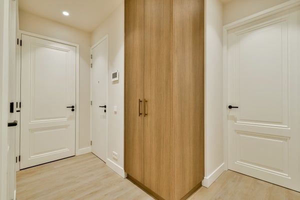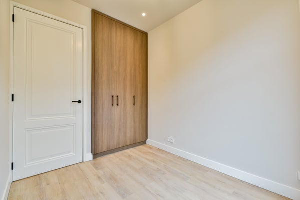De slaapkamers zijn praktisch ingedeeld en beschikken over op maat gemaakte inbouwkasten. Ook op de gang zijn vaste kasten aanwezig, wat zorgt voor extra bergruimte. De luxe badkamer is uitgerust met een inloopdouche en wastafelmeubel en er is een separaat toilet aanwezig. Tevens is er een aparte technische ruimte aanwezig met de cv-installatie en aansluitingen voor wasmachine en droger.