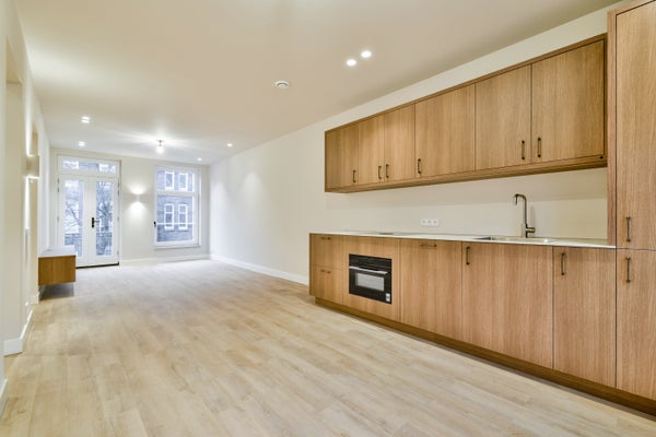 Bij binnenkomst valt direct de ruime en lichte leefruimte met open keuken op. De moderne keuken is strak uitgevoerd en voorzien van diverse inbouwapparatuur, waaronder een vaatwasser, oven, inductiekookplaat, afzuigkap en koel-vriescombinatie. Grote raampartijen zorgen voor veel natuurlijk licht en een open, prettige sfeer. In de leefruimte is tevens een op maat gemaakt tv-meubel gerealiseerd, wat bijdraagt aan de luxe en verzorgde uitstraling.