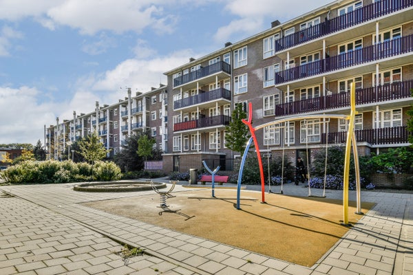 Het appartementencomplex ligt in een levendige buurt, direct tegenover Plein ’40-’45, met een gezellige dagmarkt en het overdekte winkelcentrum Slotermeer voor de dagelijkse boodschappen.