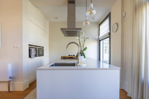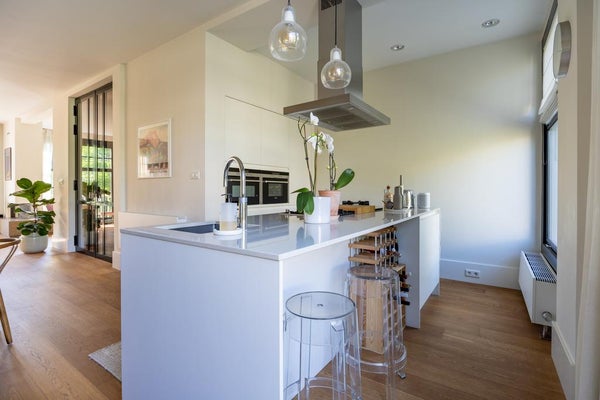 De luxueuze en moderne keuken bevindt zich aan de achterzijde en heeft een kook-/spoeleiland met bar. De keuken is voorzien van diverse inbouwapparatuur van Siemens, een teppanyaki plaat, wokbrander, een stoomoven, een combi-oven, koelkast, vriezer, vaatwasser en een Quooker kraan. Aansluitend bevindt zich een heerlijk balkon gericht op het westen.