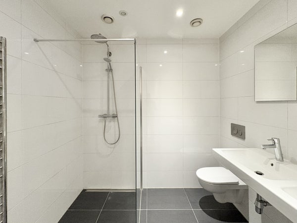 Beide slaapkamers zijn royaal opgezet en biedt voldoende ruimte voor een groot bed en extra kastruimte. De badkamer is modern en smaakvol ingericht met een inloopdouche, wastafelmeubel en hoogwaardige materialen. Daarnaast is er een apart toilet aanwezig voor extra comfort.