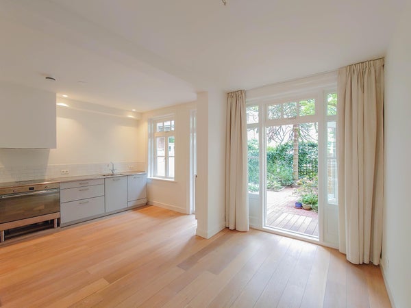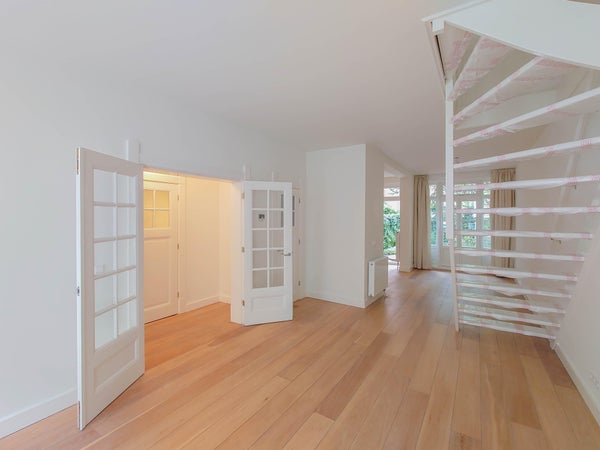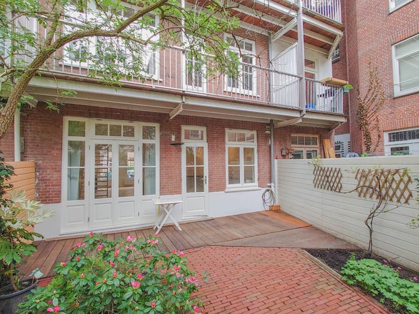 Mooi en licht nieuw gerenoveerd appartement (ongeveer 106m2) op de begane grond en eerste verdieping in de Old-West buurt met een tuin.