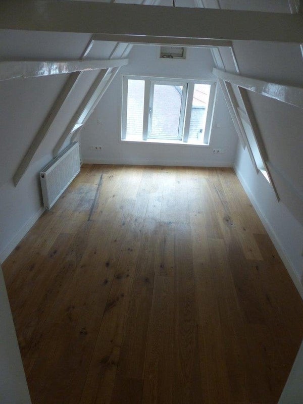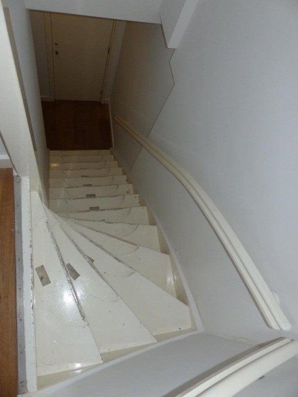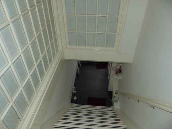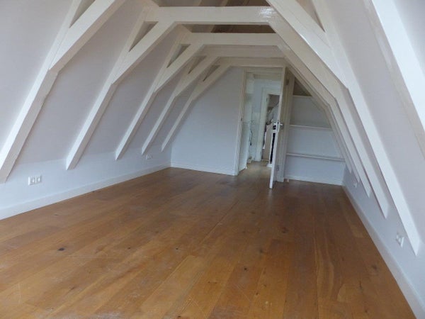 Toegankelijk via een typische Nederlandse trap, beslaat het appartement de bovenste verdiepingen van het gebouw.