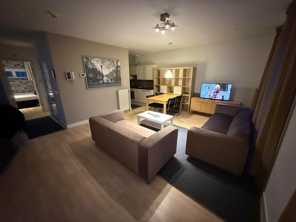 Volledig uitgeruste keuken, 2 slaapkamers (1 queensize en 2 eenpersoonsbedden met frisse schone lakens en handdoeken). Het appartement is volledig uitgerust met glazen, pannen, strijkplank, was/droogmachine, Nespresso, waterkoker, oven/magnetron, vaatwasser, kookplaat, koelkast, enz... De WiFi is perfect, stabiel en sterk. Supermarkten en restaurants om de hoek.