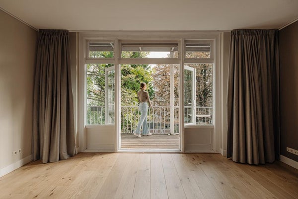 De gehele vloer is in het appartement vernieuwd en alle vertrekken zijn voorzien van gordijnen.