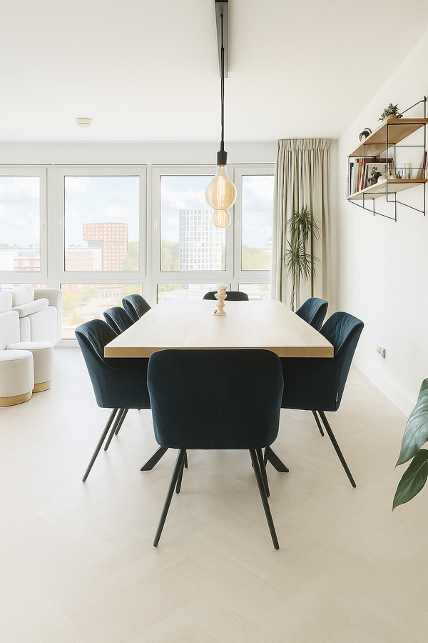 Bij binnenkomst valt direct de royale en lichte woonkamer op. Dankzij de grote ramen geniet je de hele dag van veel natuurlijk licht en een open, luchtige sfeer. De woonkamer biedt volop ruimte voor een gezellige zithoek én een riante eettafel, waardoor dit het perfecte hart van het huis is om te ontspannen of gasten te ontvangen. Vanuit hier heb je toegang tot het zonnige balkon, een heerlijke plek om in de zomermaanden buiten te genieten van de rust.