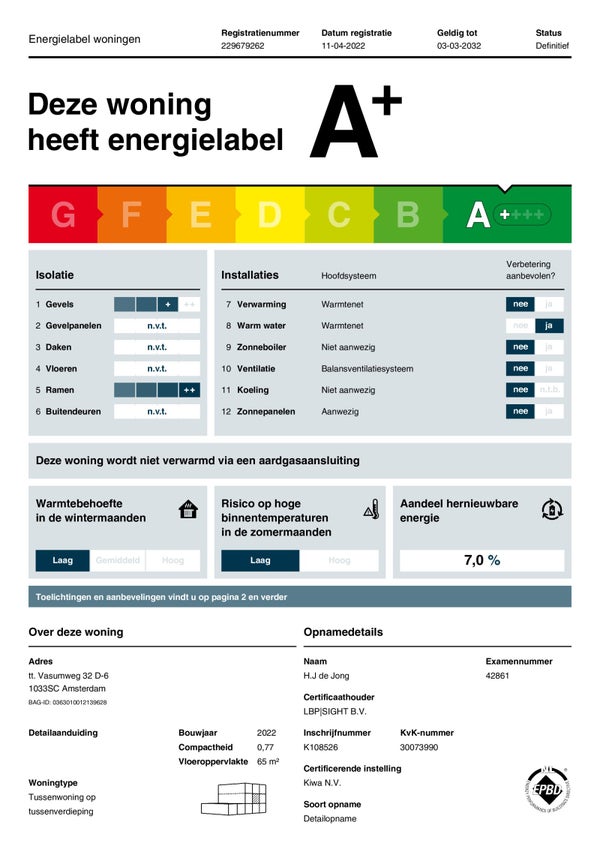 Dit 2-slaapkamer appartement heeft een woonoppervlakte van 66 m² en ligt aan het IJ, in het creatieve hart van Amsterdam-Noord. De moderne, lichte keuken is uitgerust met inbouwapparatuur. De badkamer beschikt over een inloopdouche, dubbele wastafel en een designradiator. Het appartement bevindt zich op slechts 3 minuten van de IJ-pont naar Amsterdam Centraal en nabij de A10.