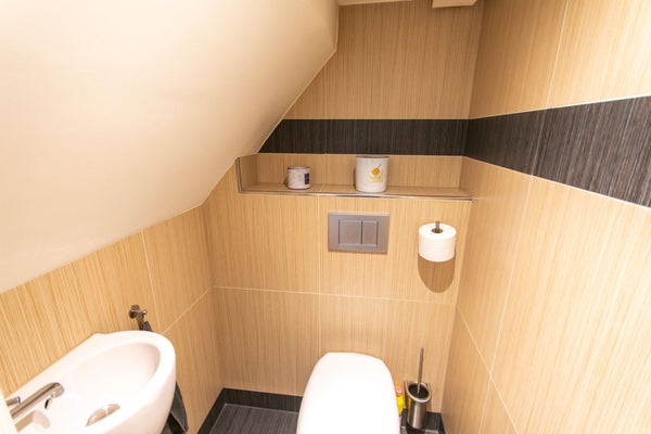 Extra Ruimte: Klein kantoorhoekje nabij de badkamer; aparte gasten toilet met wastafel.