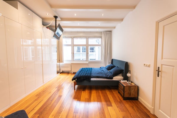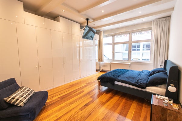 Het appartement biedt een unieke mix van erfgoedarchitectuur en luxe modern wonen in het hart van Amsterdam, dichtbij de Dam, Spui en de Negen Straatjes.