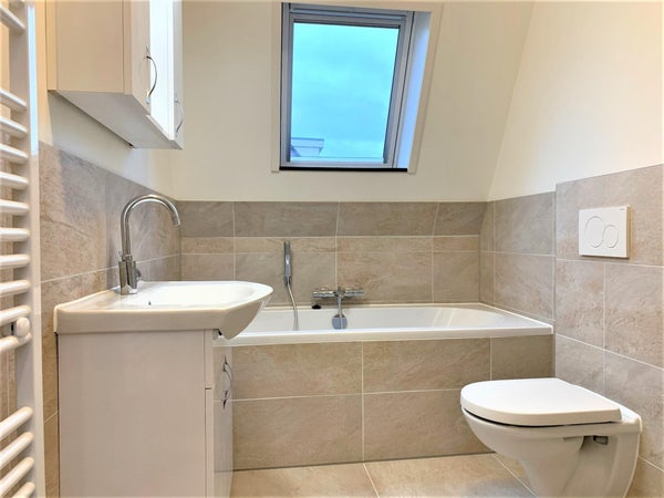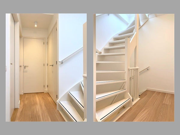 Indeling: Centrale entree met trap naar de tweede verdieping. Entree van het appartement met hal die toegang biedt tot de ruime en lichte woonkamer met open keuken. De keuken is voorzien van diverse inbouwapparatuur, waaronder een koelkast, vriezer, combi-oven, vaatwasser en een inductiekookplaat met afzuigkap. Separaat toilet met fonteintje. Vanuit de hal trap naar boven waar de 2 slaapkamers zijn gelegen. De moderne badkamer is voorzien van een ligbad, aparte douche, wastafelmeubel, tweede toilet en een designradiator. De wasmachine en droger zijn geplaatst in een aparte ruimte.