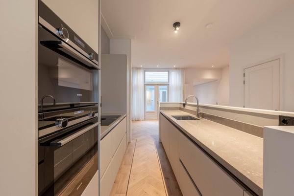 De moderne open keuken met royaal spoeleiland is uitgerust met hoogwaardige inbouwapparatuur en biedt alle ruimte voor kookliefhebbers. Aansluitend bevindt zich een sfeervolle patio: een heerlijke plek om buiten te zitten midden in de stad.