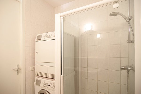 Gemeenschappelijke hal met brievenbussen; ingang tot het appartement, gang met apart toilet en kapstokgebied, ruime en lichte woonkamer (door de hoekligging) met open keuken met alle voorzieningen, slaapkamer met ensuite badkamer, de badkamer heeft een douche, wastafel en hier vind je een wasmachine en droger.
