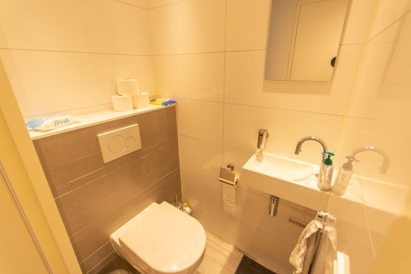 Keuken: Je betreedt het appartement via de centrale hal. Direct naast de ingang bevindt zich de volledig uitgeruste keuken. De keuken is voorzien van een vaatwasser, inductiekookplaat, magnetron, oven, koelkast en diepvries. De bar is perfect voor het ontbijt. Naast de keuken vind je bergruimte.