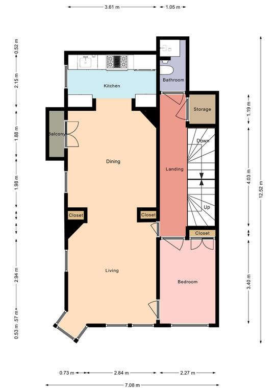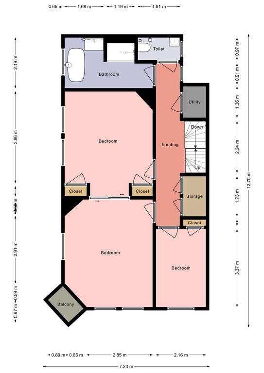 Via de hal met toegang tot alle kamers op deze verdieping. In de hal vindt u een berging en een gastenWC. Aan de voorkant heeft u de eerste slaapkamer die ook als thuiswerkplek kan worden gebruikt. Naast deze kamer vindt u de lichte woonkamer met aan beide zijden ramen en een kleine erker in de hoek die een geweldig uitzicht biedt.