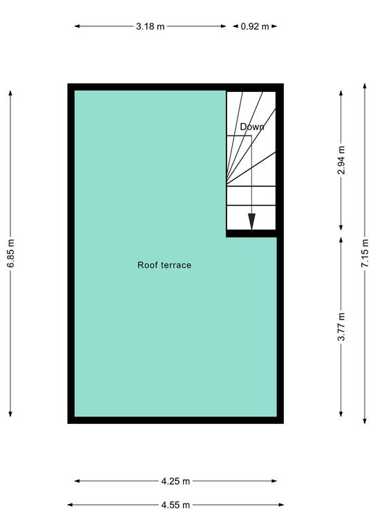 Op de bovenste verdieping vindt u het privédakterras van ongeveer 20 m2.