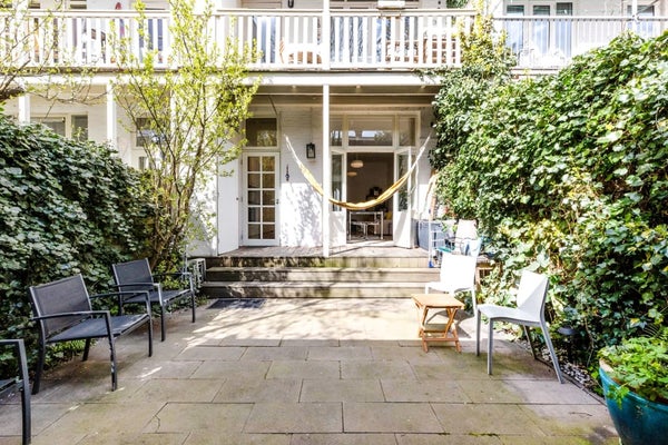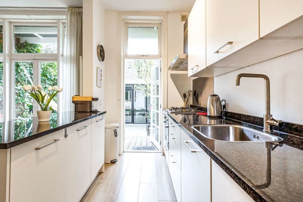 Dit volledig gemeubileerde 2-slaapkamer appartement van 59m2 heeft een aparte studio van 27m2 en een tuin van 27m2. Het appartement biedt ruime woonruimtes met veel natuurlijk licht, elk met een eigen slaapkamer en woonkamer, en een goed uitgeruste keuken. De slaapkamers zijn gezellig en bieden voldoende opbergruimte. De keuken is van alle gemakken voorzien. Buiten is er een verzorgde tuin, perfect om te ontspannen. Gelegen in een levendige buurt met gemakkelijke toegang tot het openbaar vervoer, met restaurants, cafés en winkels in de buurt. Slechts 10-15 minuten van het Centraal Station en Leidseplein. Ideaal voor een comfortabel verblijf in de stad.