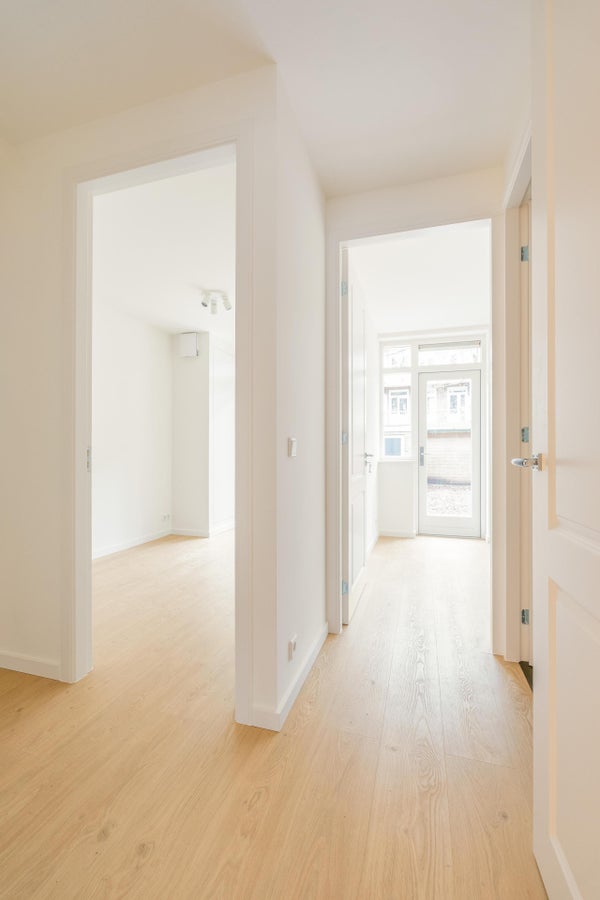 Middels de privé entree op de begane grond betreedt u een ruime hal. Deze hal biedt toegang tot de ruime woonkeuken met nieuwe keuken voorzien van inbouw apparatuur (combioven, gaskookplaat, wasemkap, koelkast, vriezer en vaatwasser). De grote ramen zorgen voor een prachtige lichtinval maar ook een fijn uitzicht op de straat. Aan de achterzijde van de woning vindt u 2 ruime slaapkamers met een mooi uitzicht op de goed onderhouden achtertuin. Beide slaapkamers zijn voorzien van openslaande deuren. Hierdoor wordt er een fijne verbinding met de achtertuin gemaakt. De nieuwe badkamer kenmerkt zich door een hoogwaardig en luxe afwerkingsniveau. De badkamer is net als de rest van de woning voorzien van vloerverwarming. In de hal vindt u nog een ruime kast die plaats biedt voor het plaatsen van een wasmachine en een droger.
