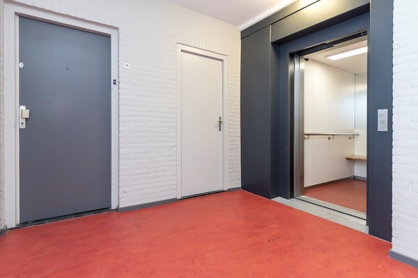 Via de gesloten centrale entree met brievenbussen, video-intercominstallatie en deurbelletjes kun je de verdiepingen bereiken met de lift en de trap.