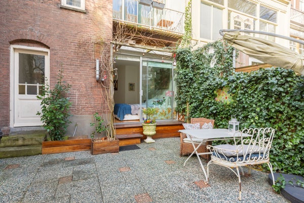 Op loopafstand van het Vondelpark ligt dit lichte en ruimtelijke appartement van 53 m3 met riante tuin van ca 32 m2 op het zuiden. Het tuinhuis is 9 m2 en is een geweldige en rustige plek om te werken. Dit fijne twee/drie kamer appartement aan de statige Koninginneweg in Oud Zuid heeft hoge plafonds en een openhaard.